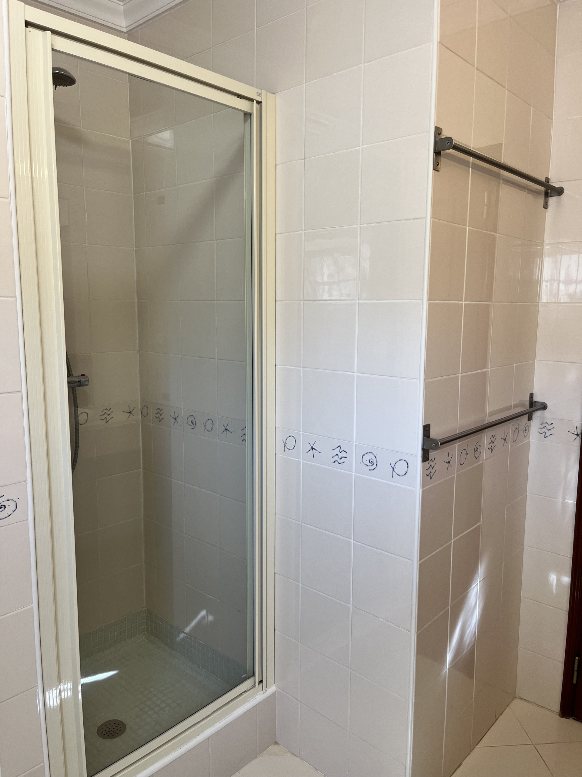 Diese beiden Schlafzimmer teilen sich ein großzügiges Familienbad, das 2021 renoviert wurde und über eine große begehbare italienische Dusche verfügt.