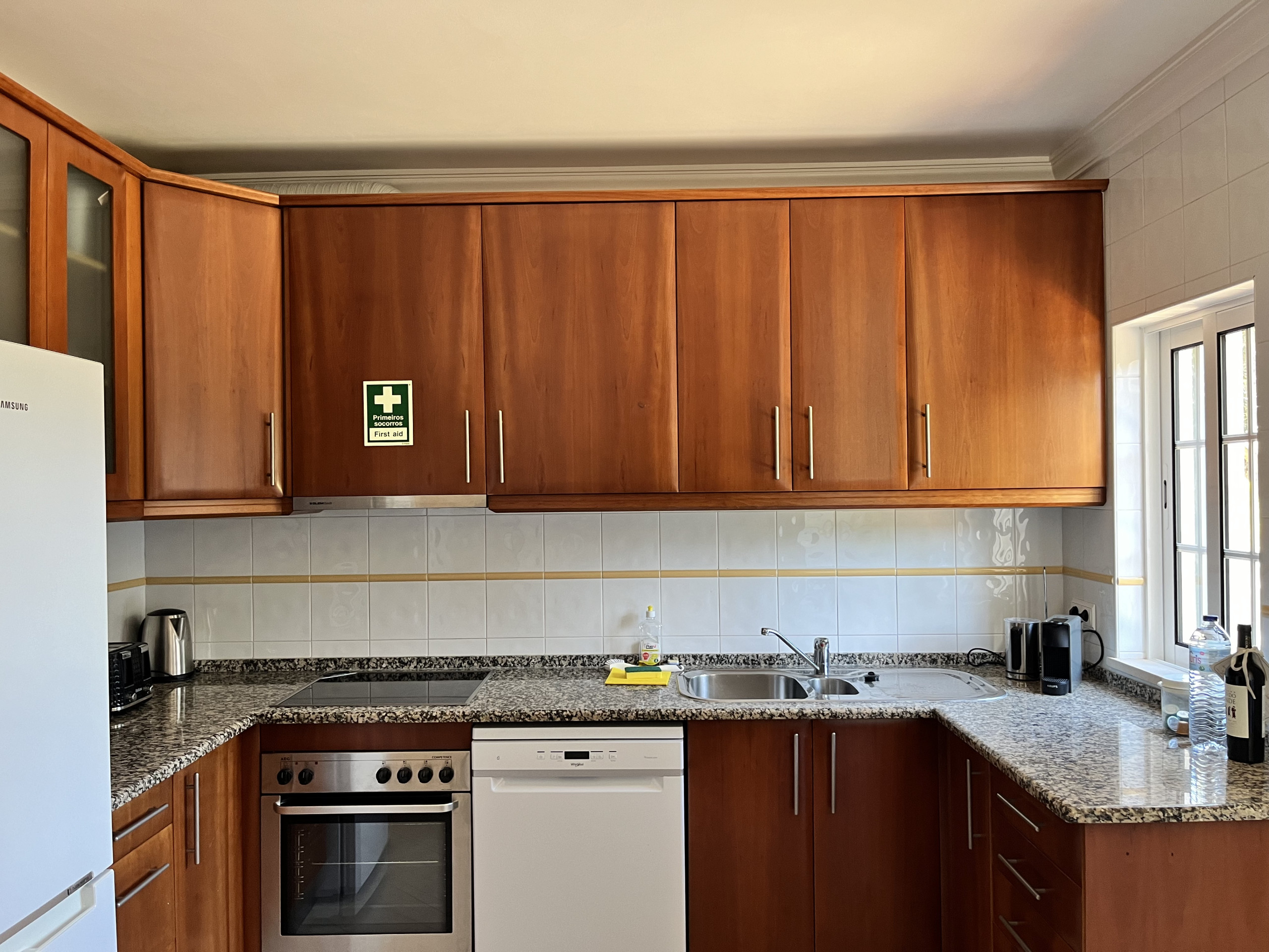 Im Inneren verfügt die Villa über eine große Eingangshalle, die in die voll ausgestattete Küche führt. Diese bietet Marmor-Arbeitsflächen, Elektrobackofen, Elektrokochfeld, Kühl-/Gefrierschrank, Geschirrspüler sowie sämtliches Kochgeschirr, Utensilien, Töpfe und Geschirr für einen komfortablen Selbstversorgeraufenthalt.
