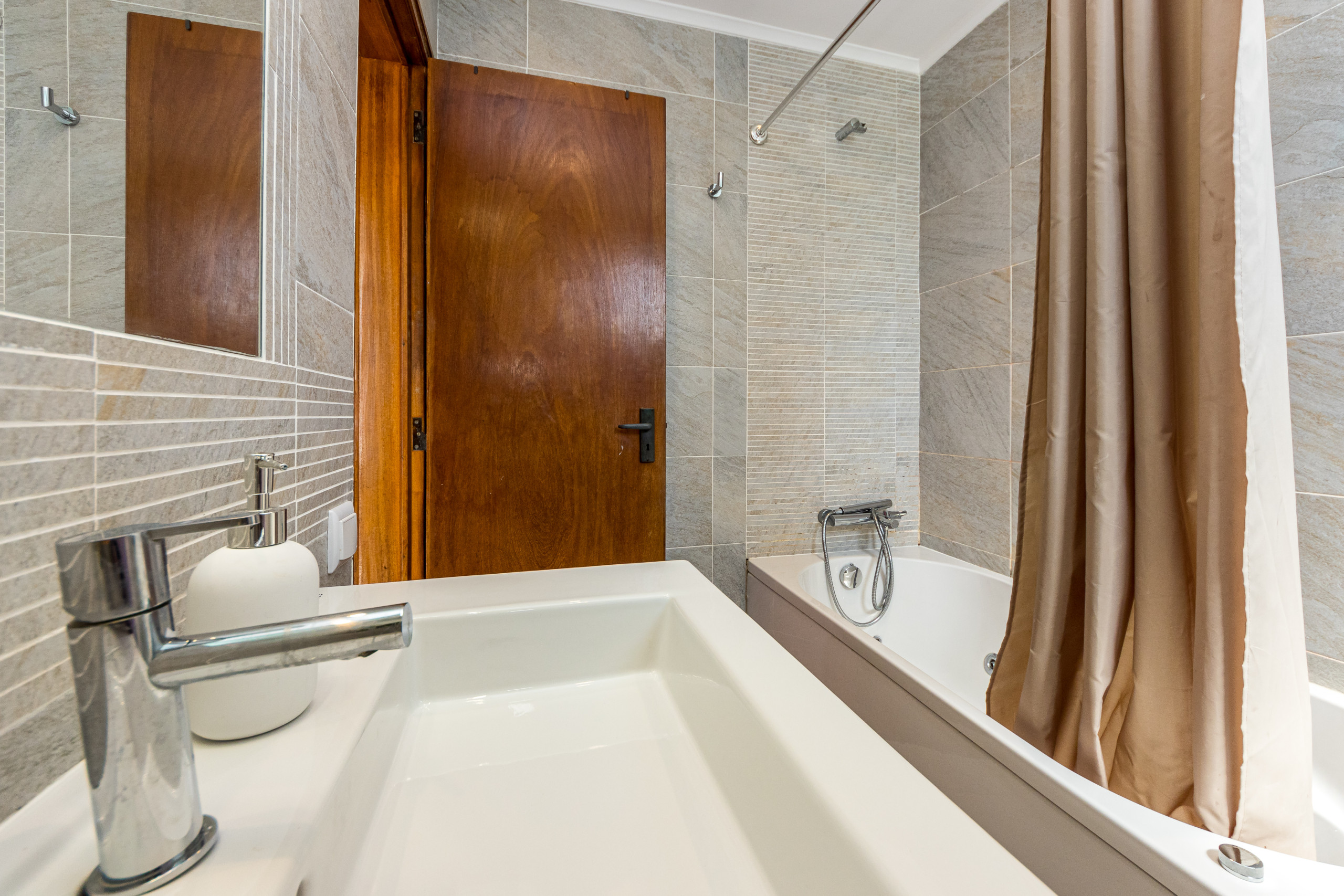 Privates Badezimmer mit Hydromassage-Badewanne und Dusche