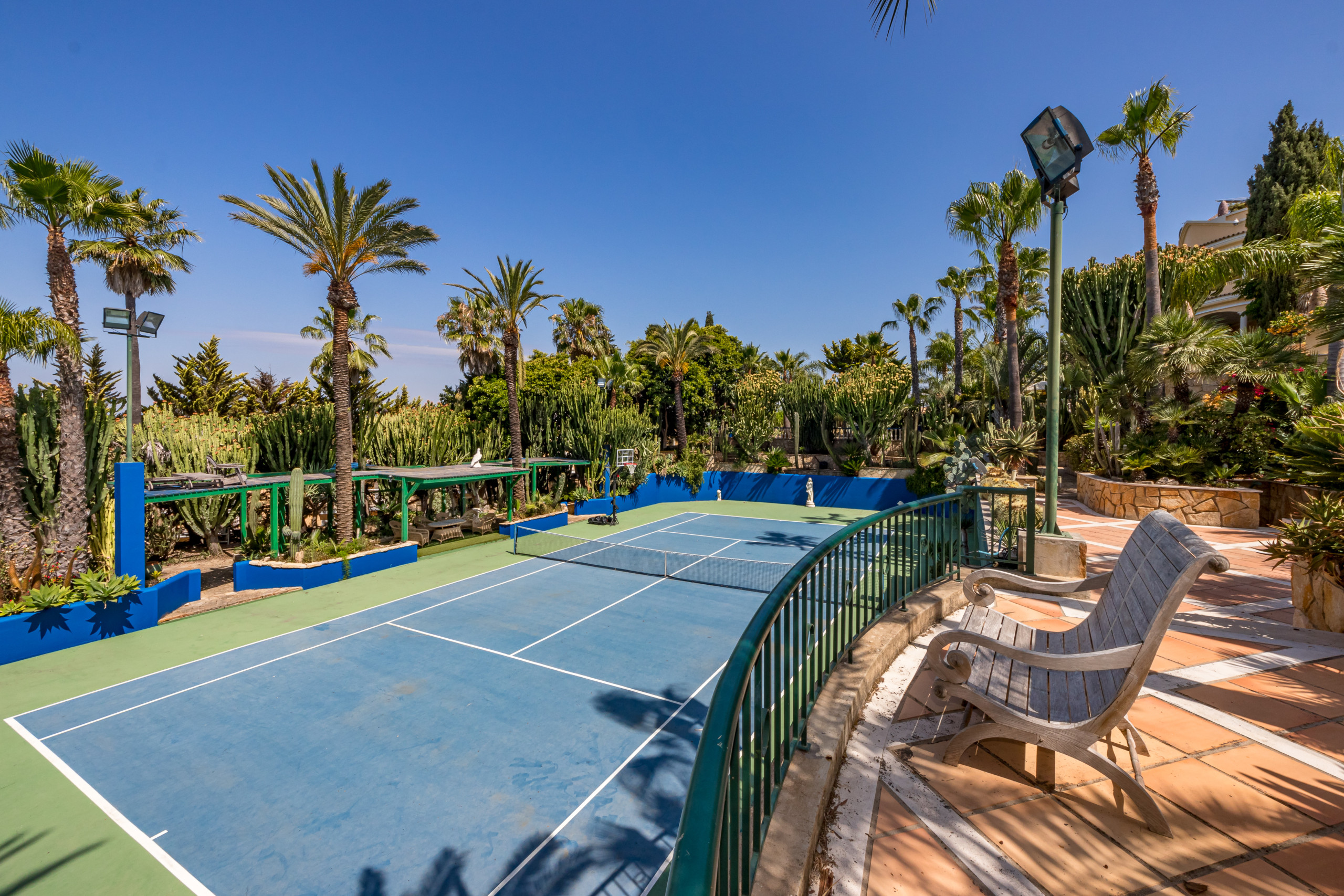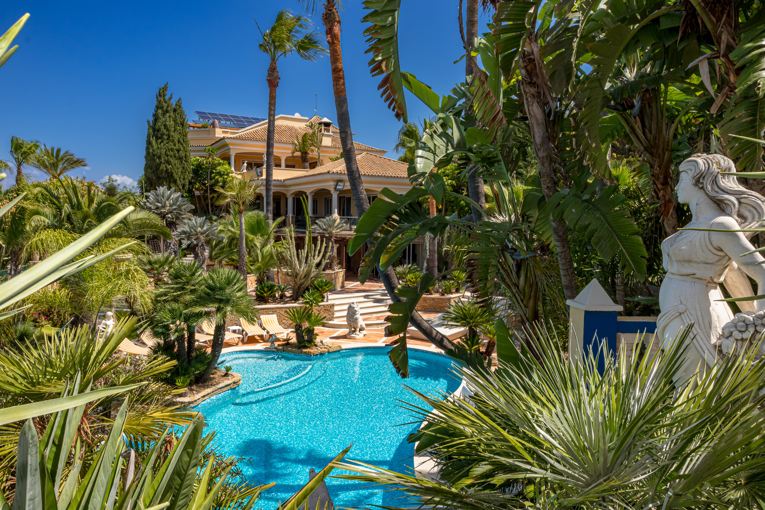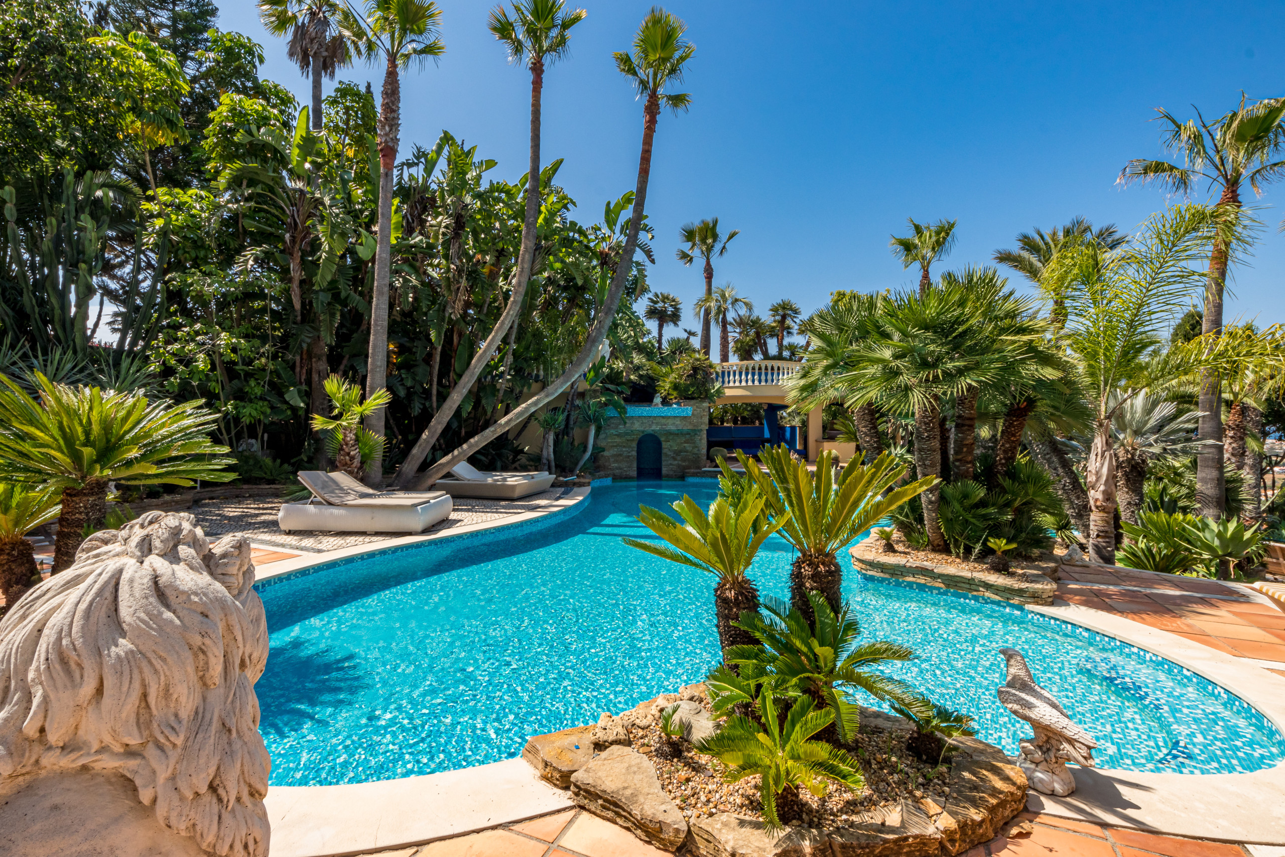 Des allées paysagées traversent les jardins de cactus et de palmiers jusqu’à :