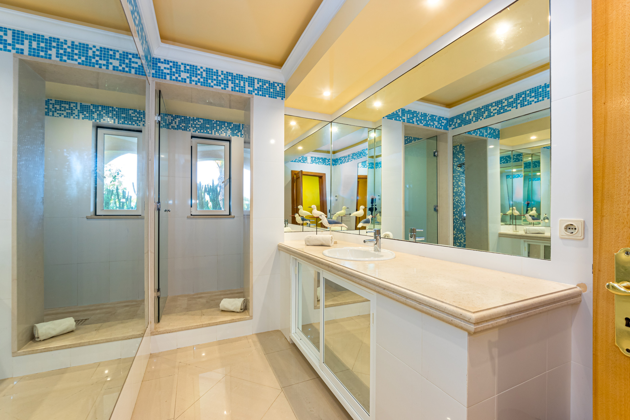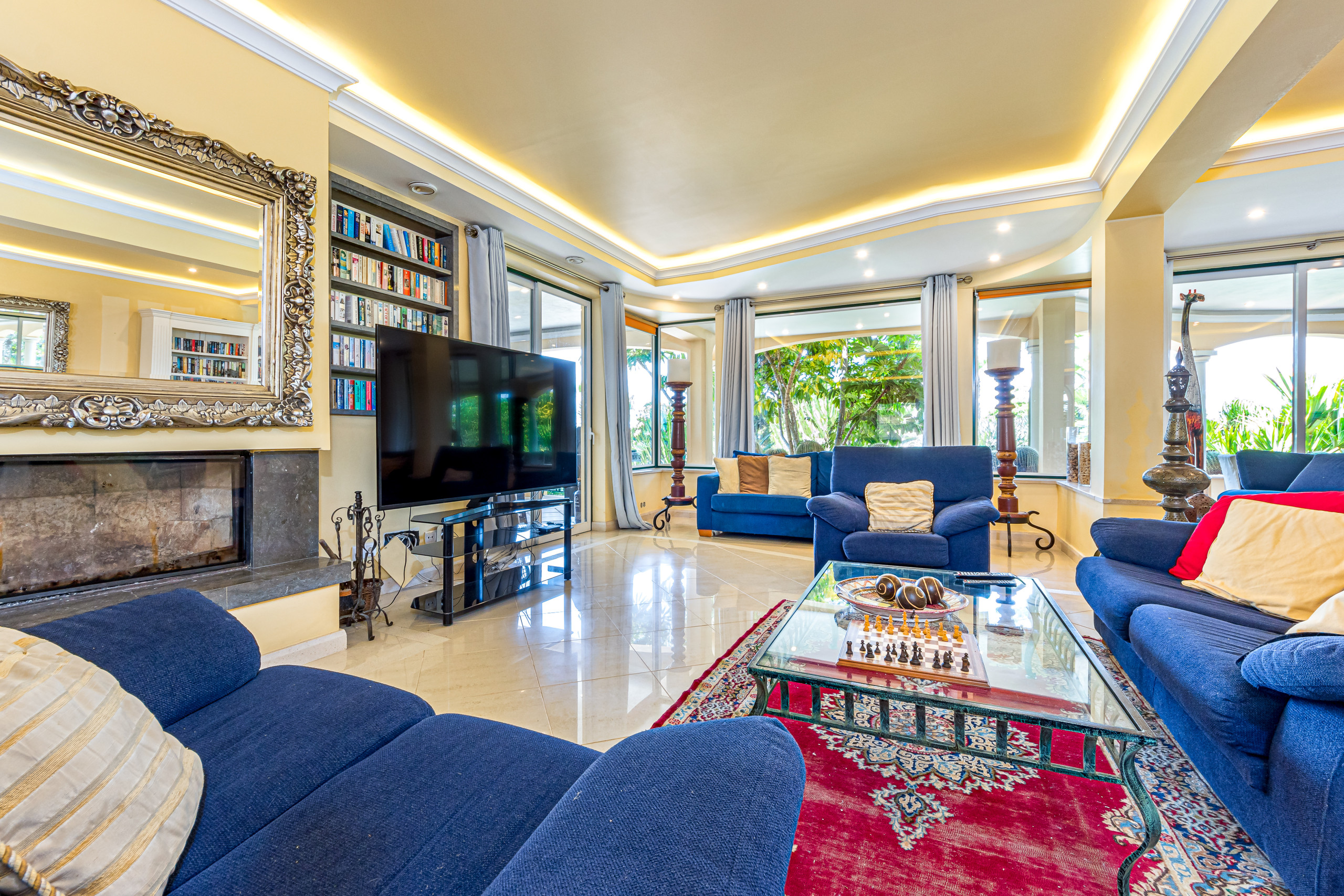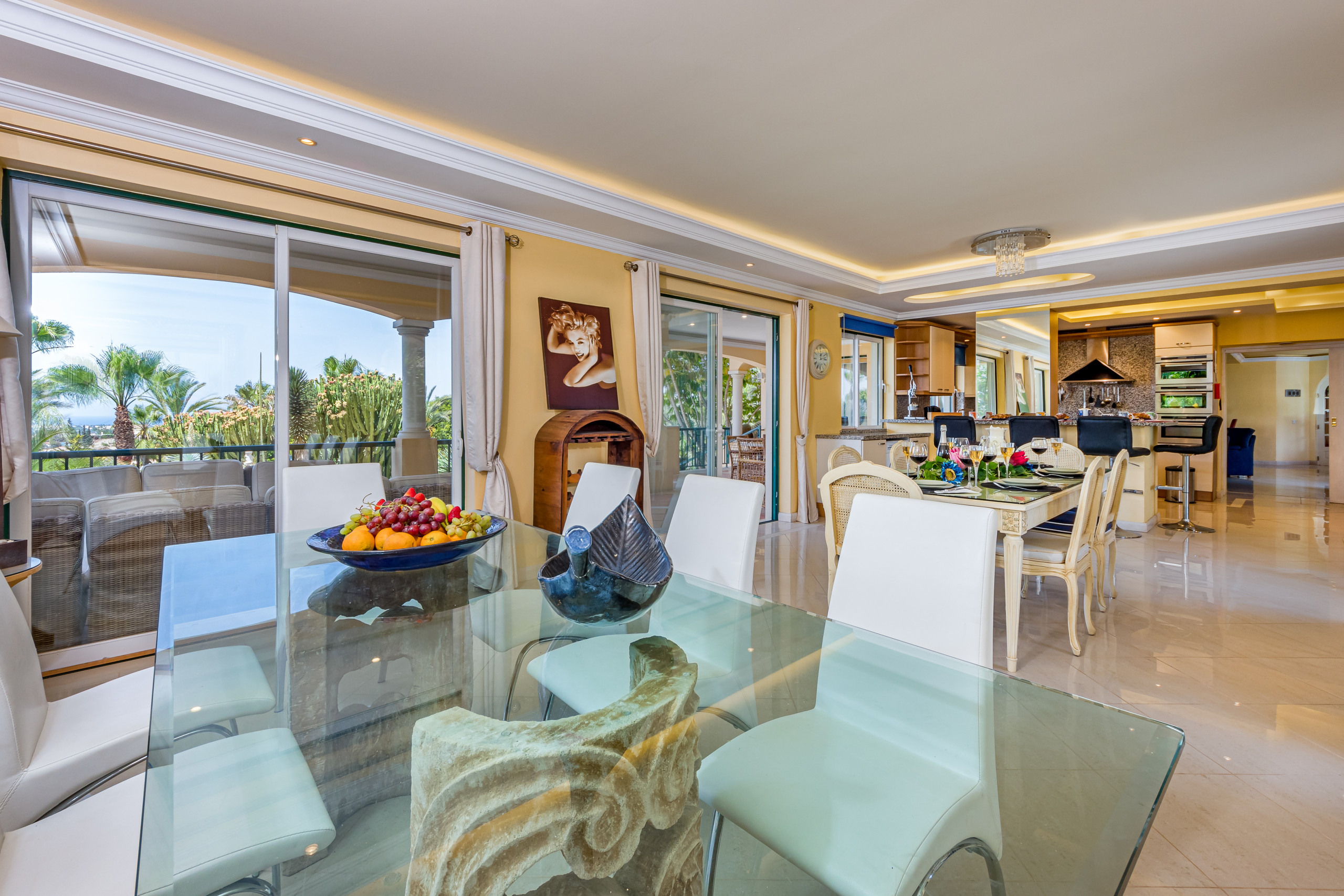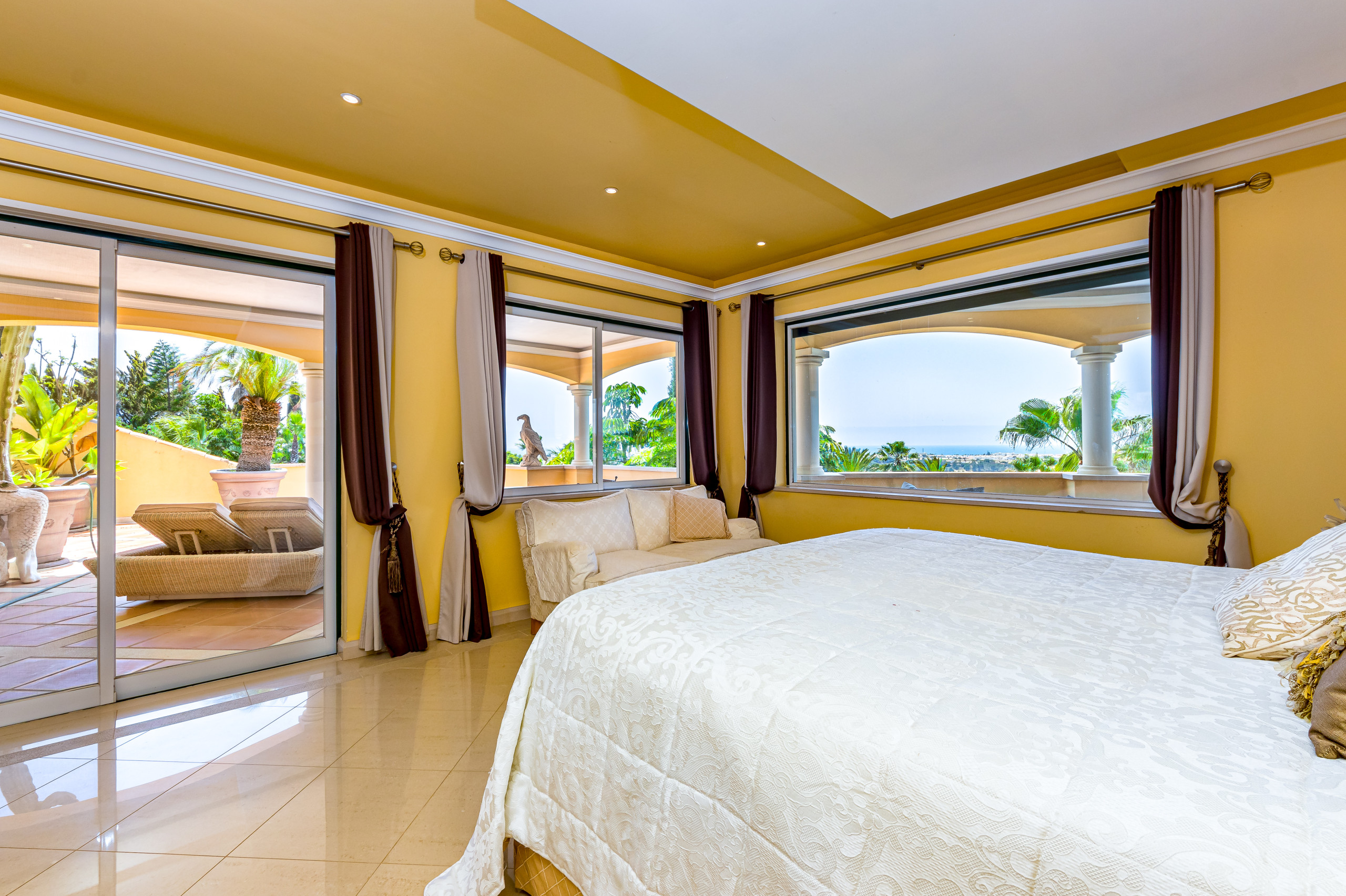 Des portes-fenêtres donnent accès aux terrasses offrant de magnifiques vues sur les jardins de cactus et la mer.