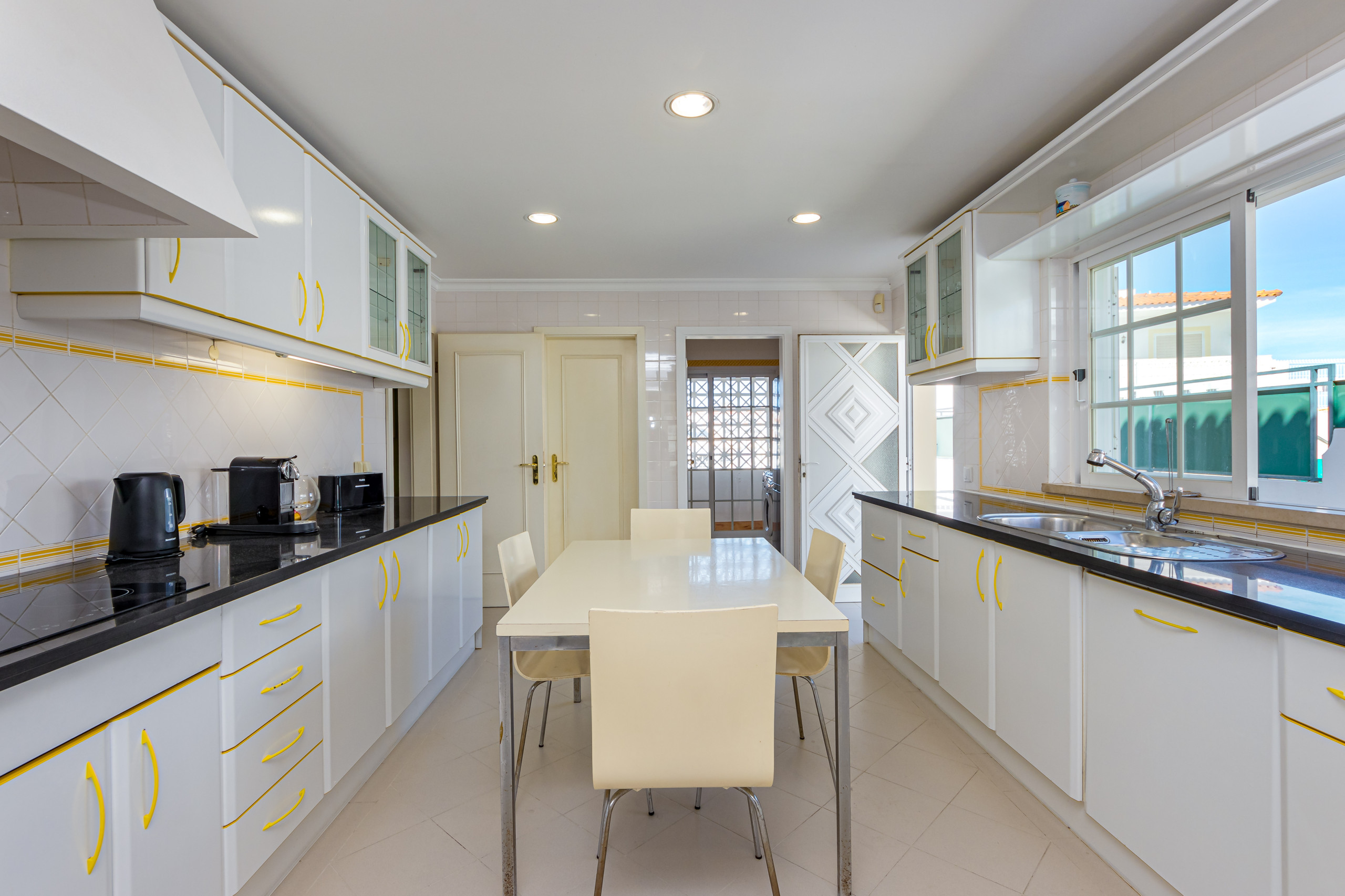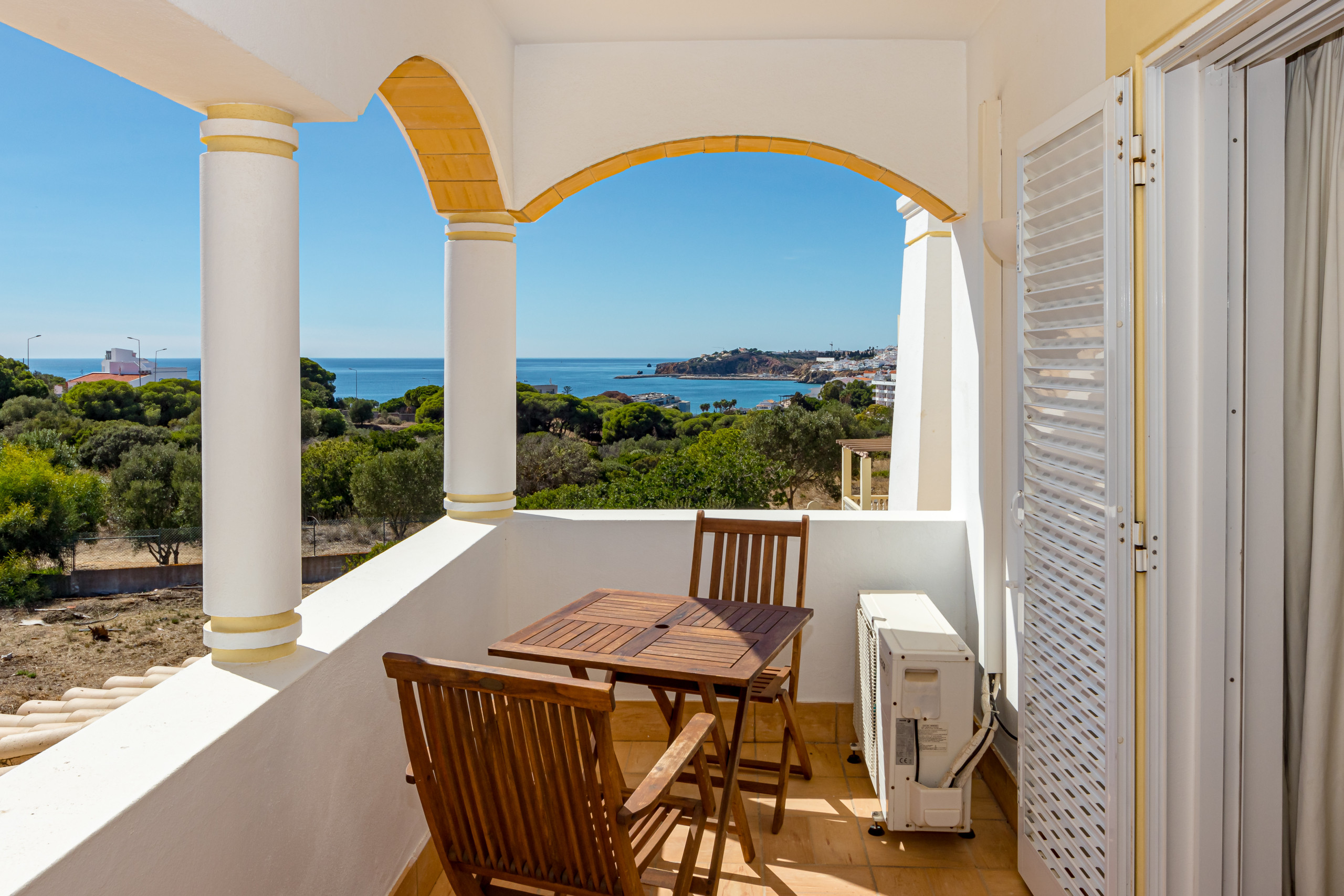 Depuis le premier étage, un escalier extérieur mène à une terrasse sur le toit privée offrant des vues exceptionnelles sur Albufeira et l’océan.