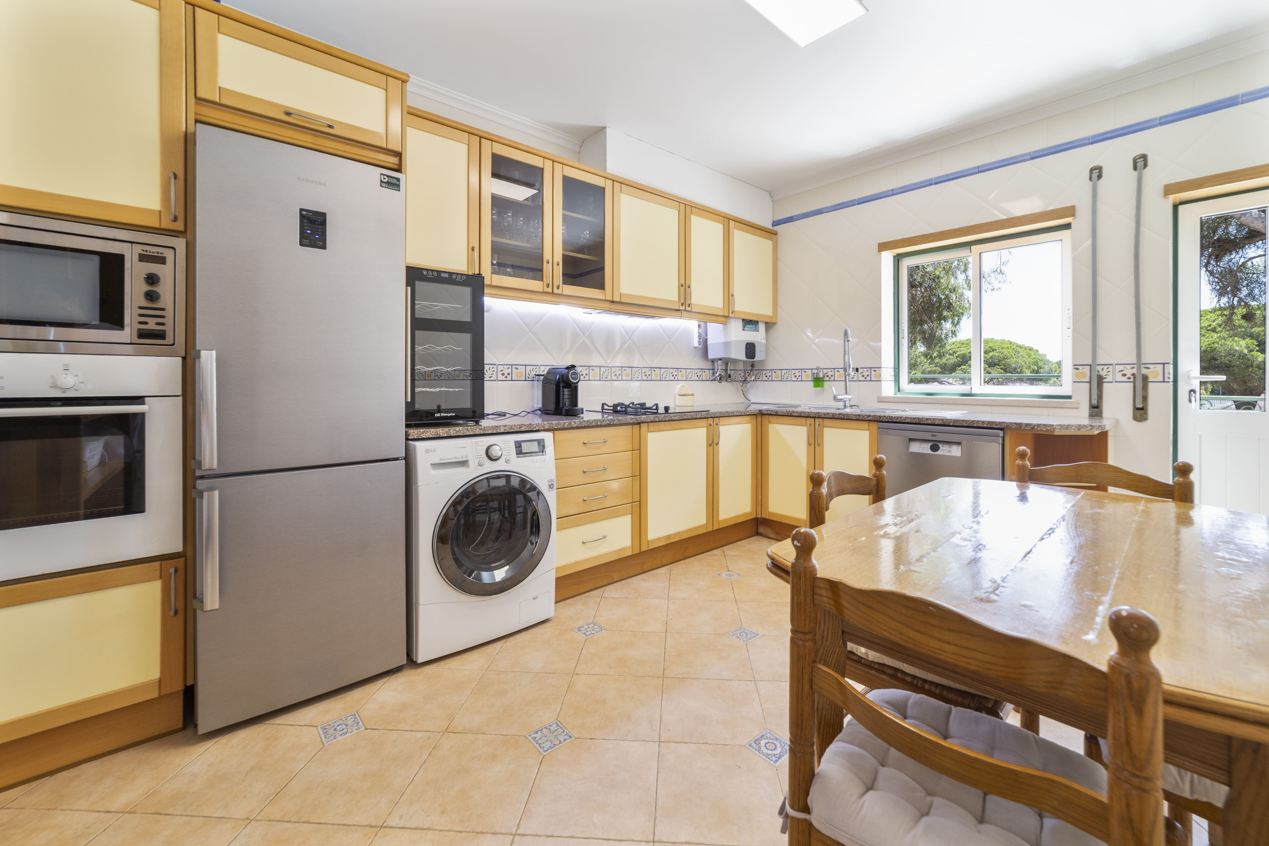 A propriedade tem acesso com degraus e estacionamento exterior disponível na entrada. No interior, a cozinha está totalmente equipada com forno elétrico, micro-ondas integrado, placa de fogão com dois bicos elétricos e um a gás, exaustor, máquina de lavar roupa, máquina de lavar louça, frigorífico com congelador, chaleira, torradeira, liquidificador e todos os utensílios e louças necessários para uma estadia autossuficiente.