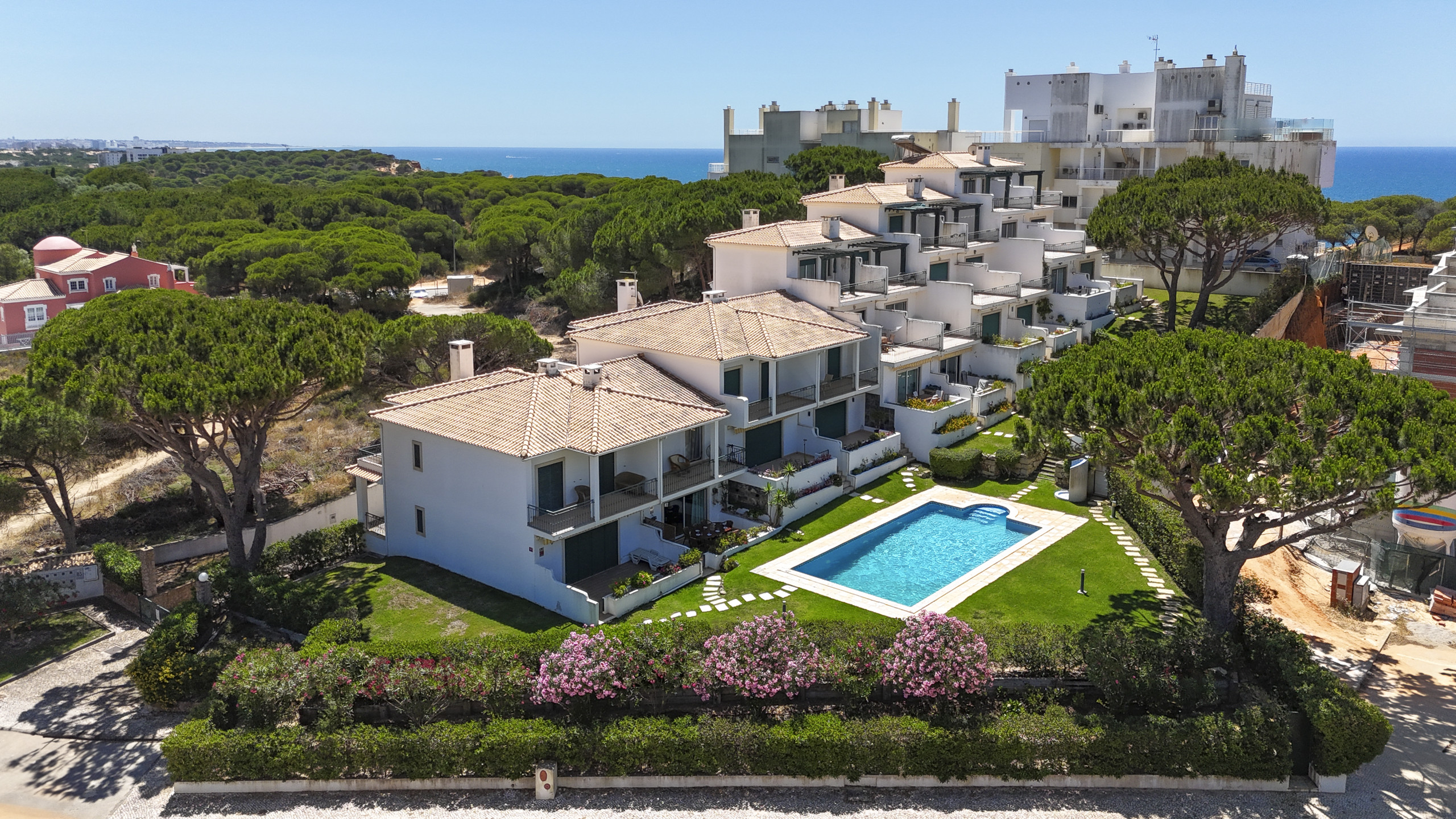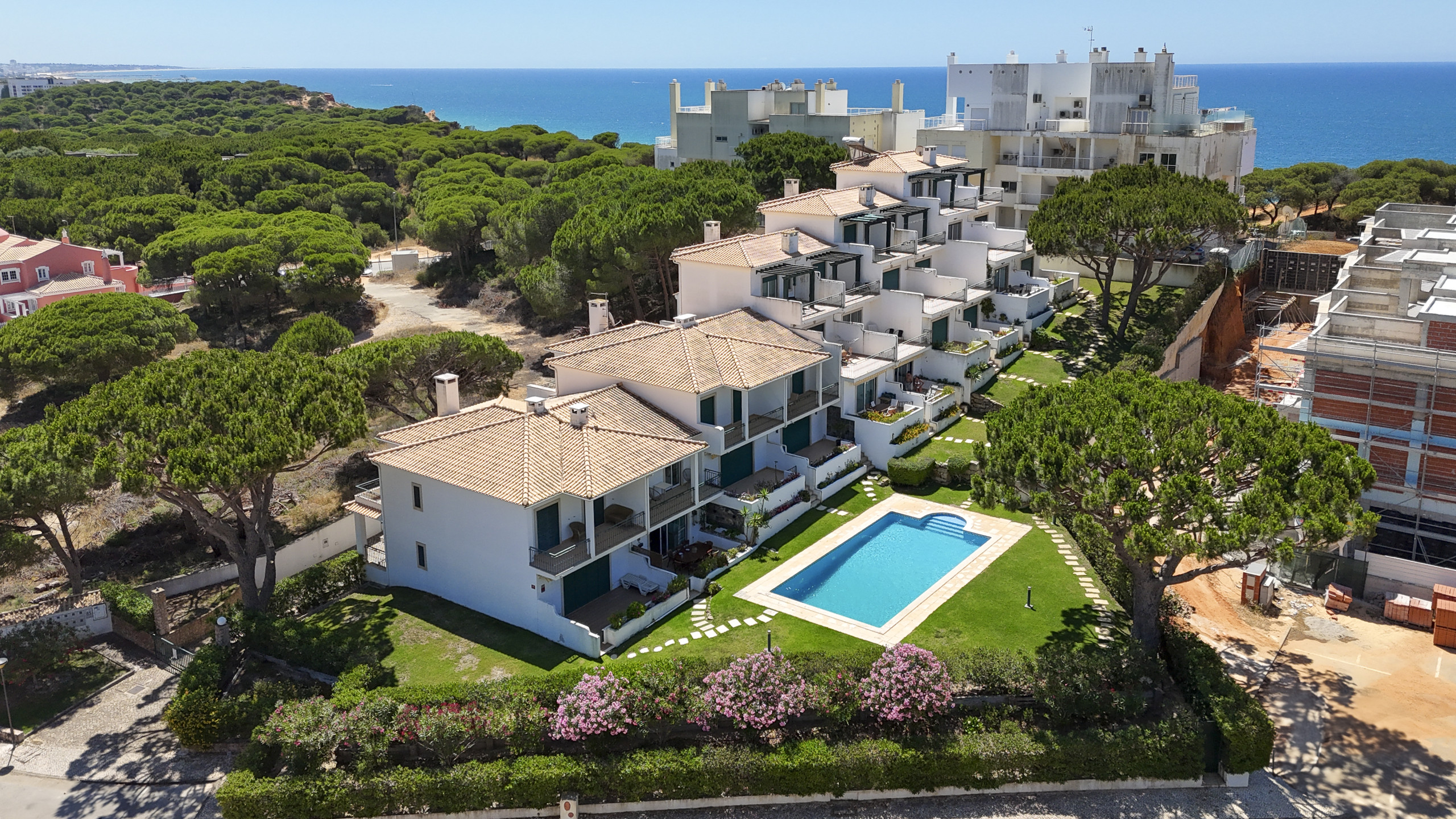 Esta moradia está inserida num condomínio com acesso a encantadores jardins e piscina comuns e está literalmente a menos de 500 metros da praia da Falésia.
