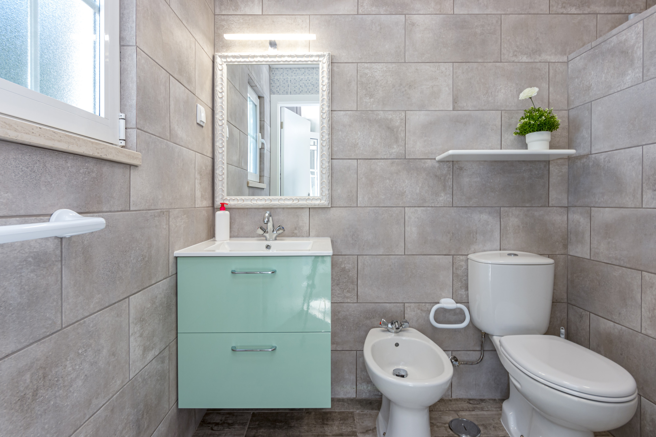 O quarto de banho tem sanita, bidé, lavatório, secador de cabelo e chuveiro.