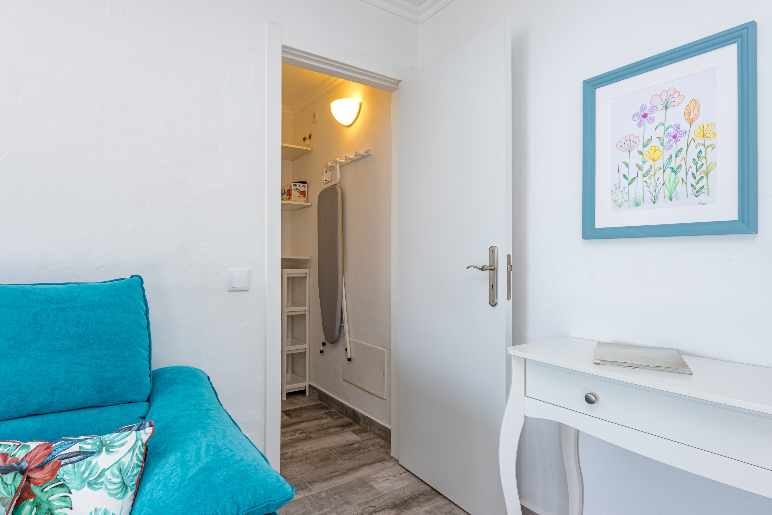 Também tem uma despensa para arrumação com o ferro e a tábua de passar a ferro e tem espaço para pendurar roupa.