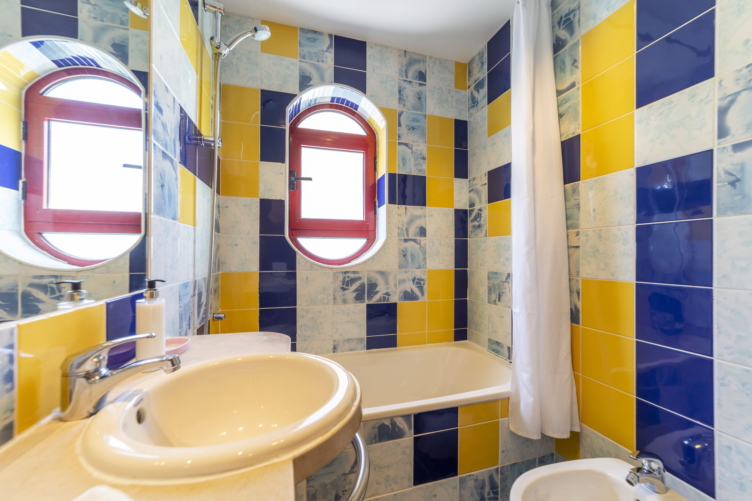 Ao fundo do corredor, do lado direito, encontra-se uma casa de banho com banheira que será uma casa de banho partilhada com estes dois quartos que não têm wc privativo.