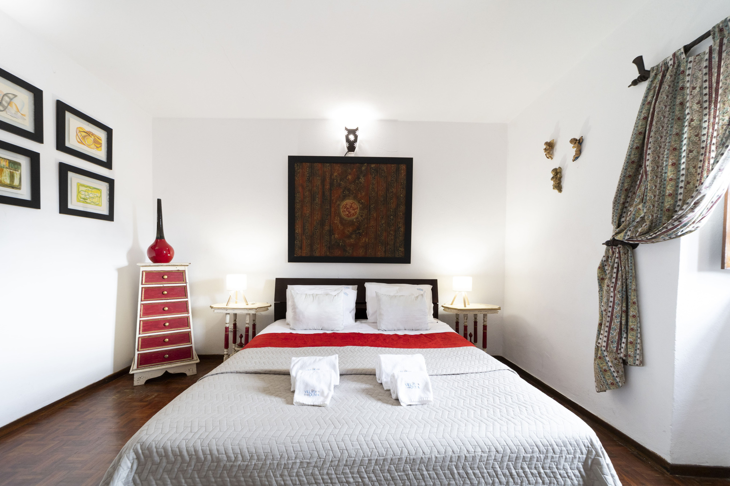 Subindo nove degraus, encontram-se dois quartos acolhedores, cada um com duas camas individuais, roupeiros e ar condicionado. Estes quartos, característicos das construções tradicionais, possuem janelas pequenas e altas.