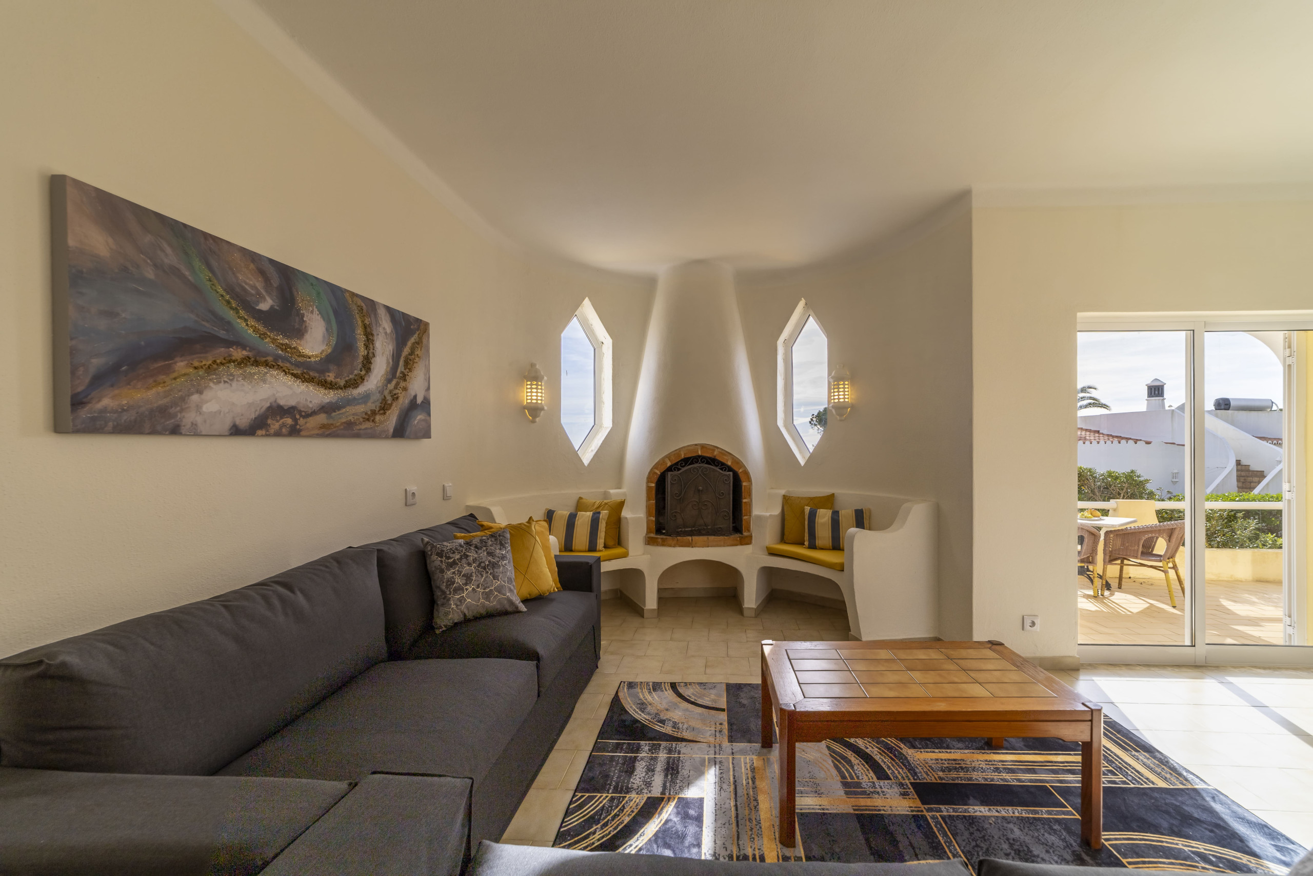 Equipado com Wi-Fi, ar condicionado na sala e em alguns quartos, cofre e lareira, este apartamento promete uma estadia confortável e memorável em Carvoeiro.