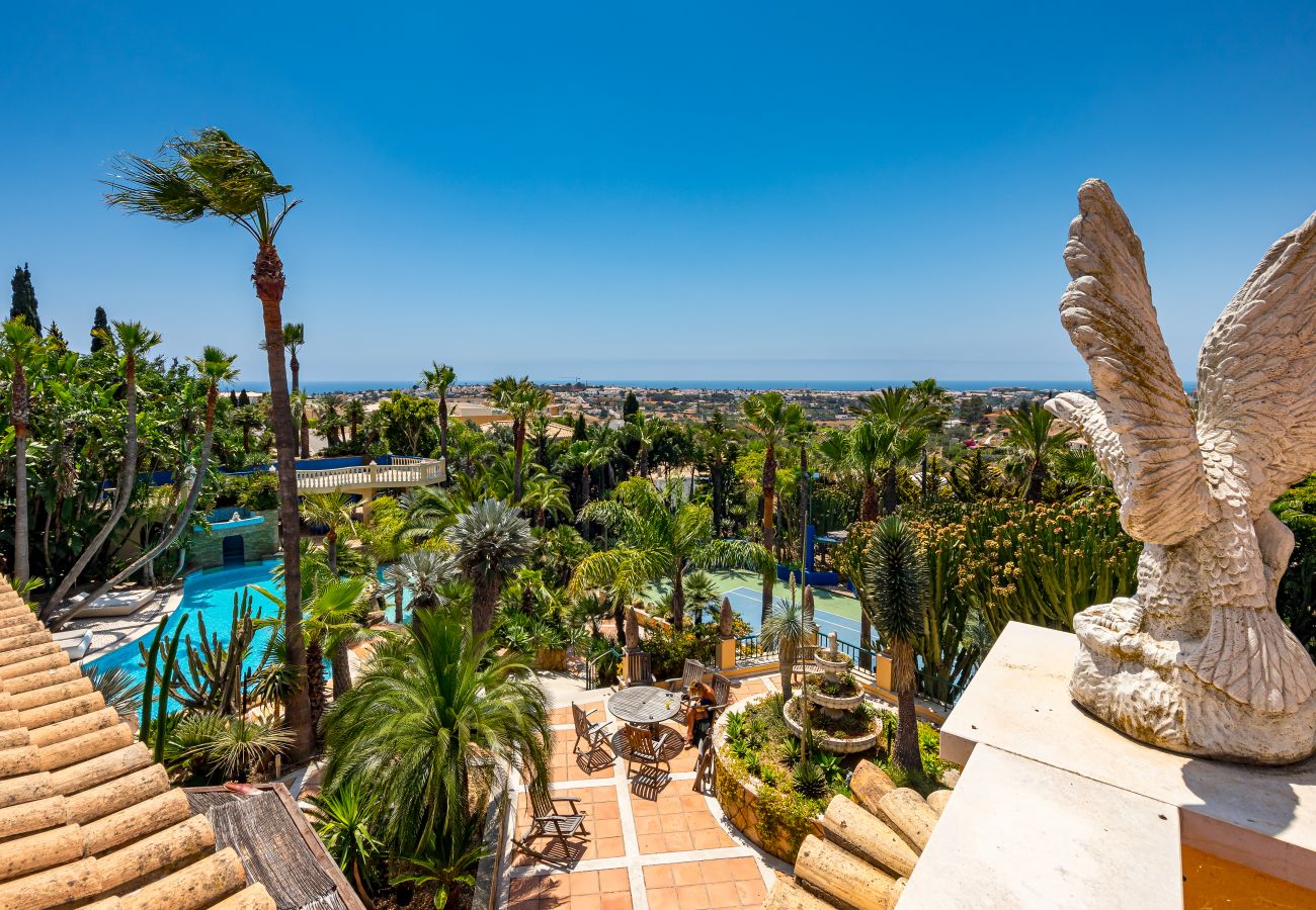 Externally, pathways meander through the cacti and palm tree gardens to the large swimming pool, tennis court and pool table.