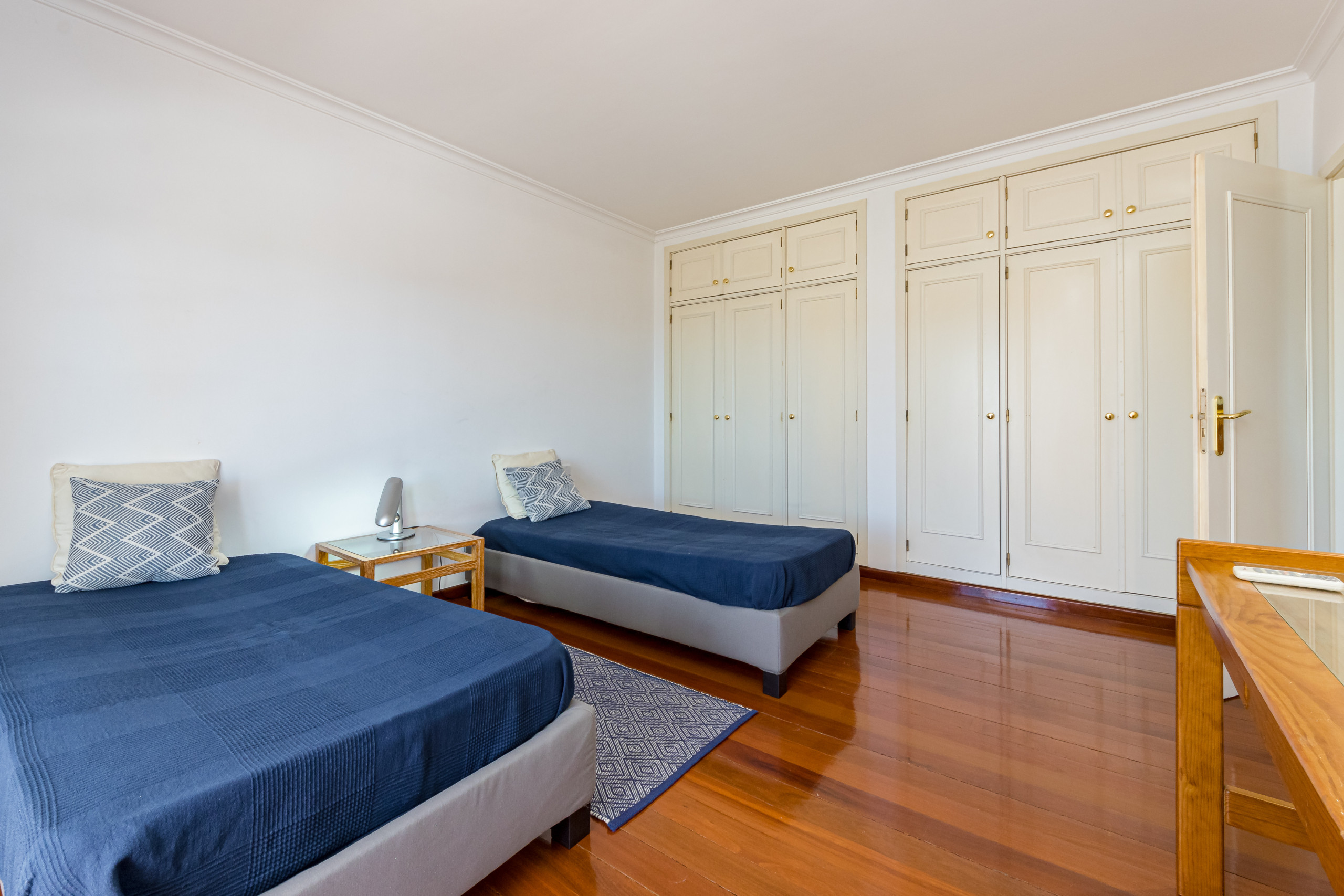 Bedroom 3 has two single beds, air conditioning and fitted wardrobes. This bedroom is ideal for the younger children as there is no terrace, just windows.