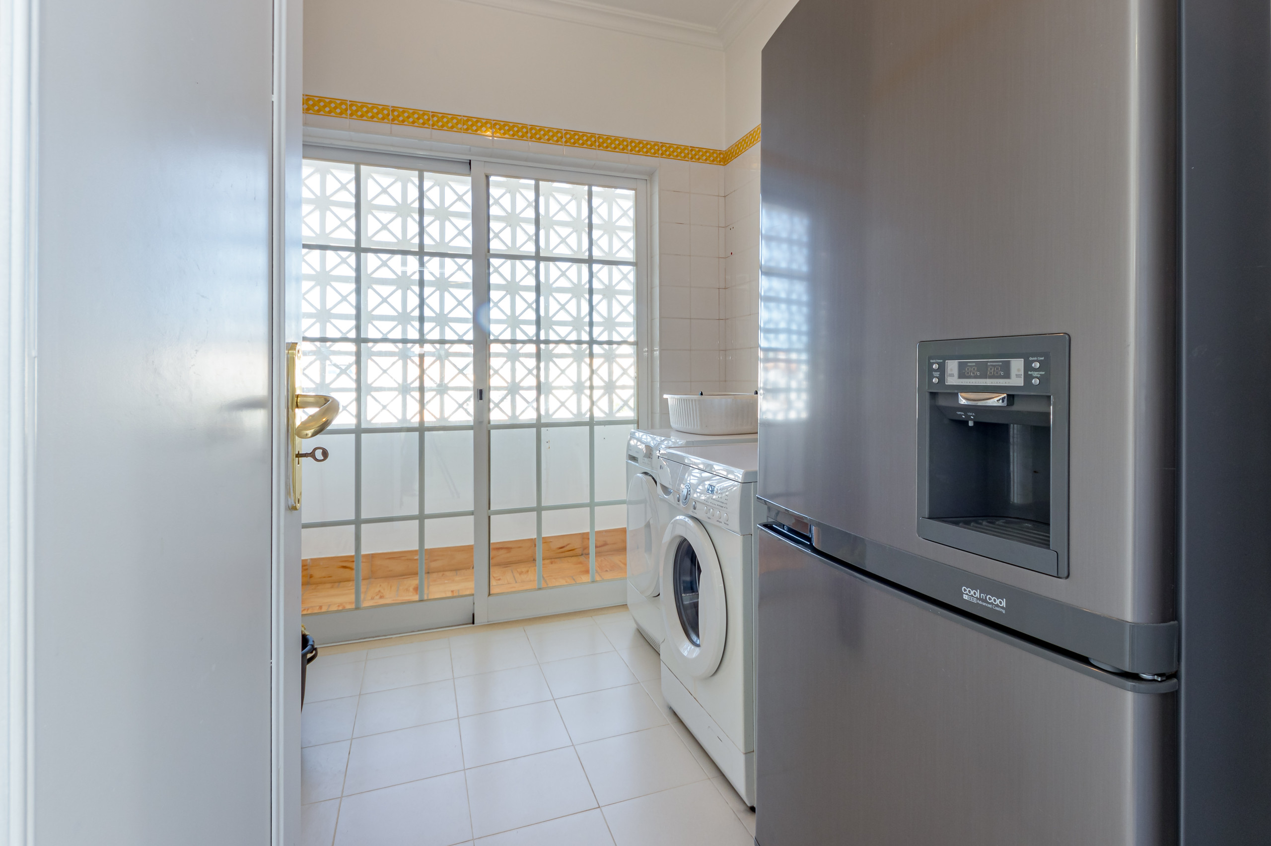There is a separate laundry room with washing machine, tumble dryer, large fridge freezer, iron and ironing board.