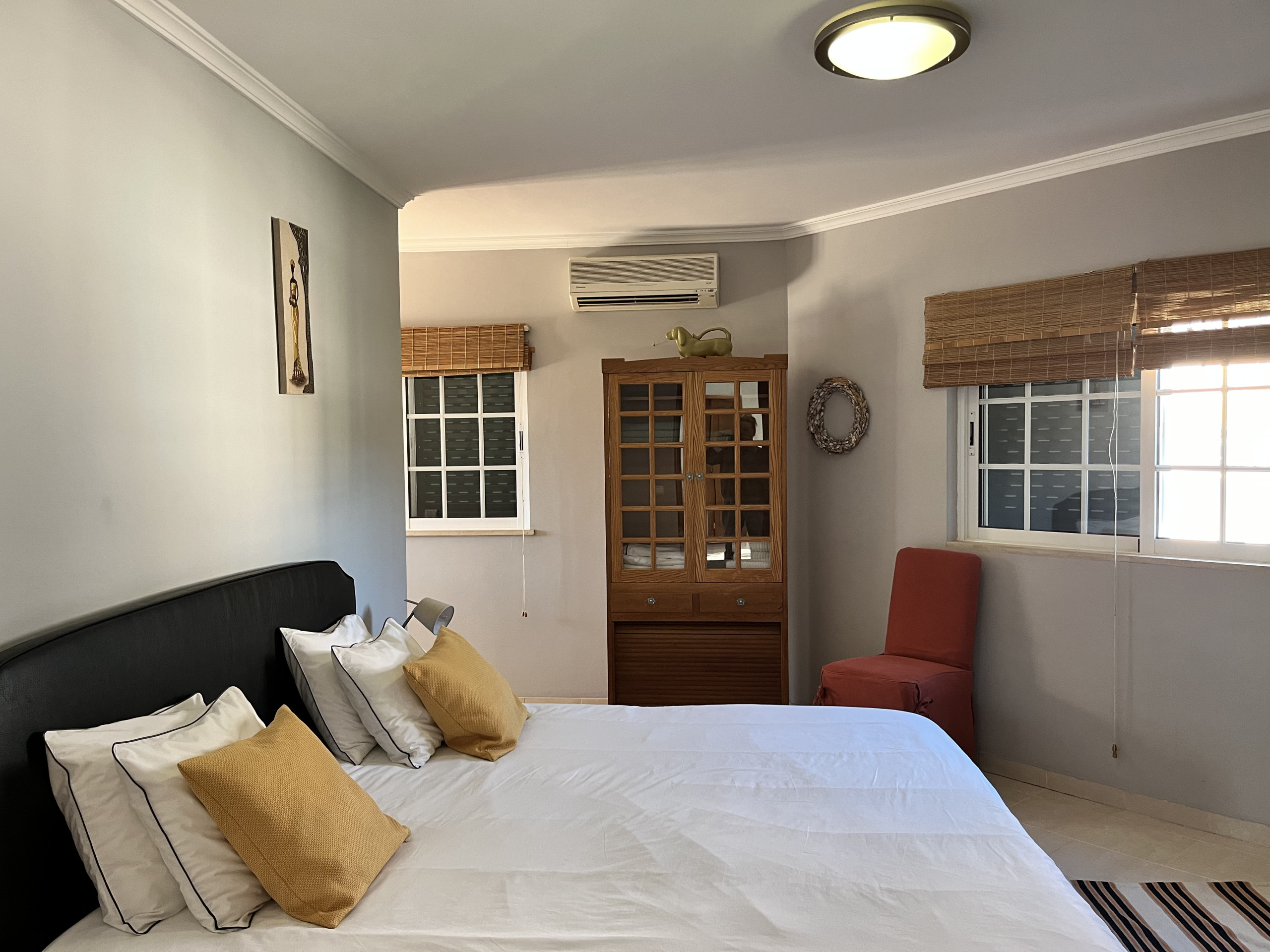 The master bedroom has a large double bed, fitted wardrobes, air conditioning and a large private terrace. It also has an en-suite shower room with walk in shower, double basins and toilet.